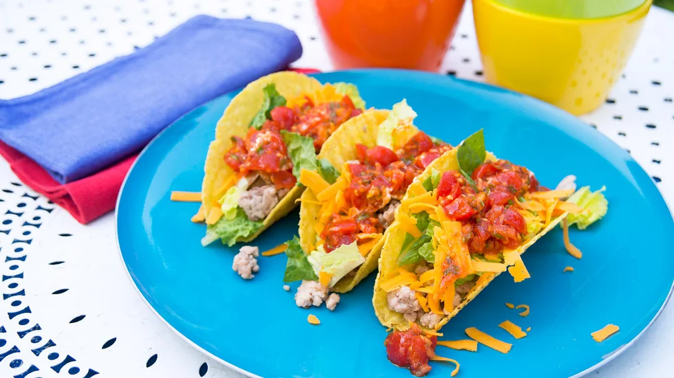 - Spoon the turkey into a taco and top with lettuce, cheese and salsa.